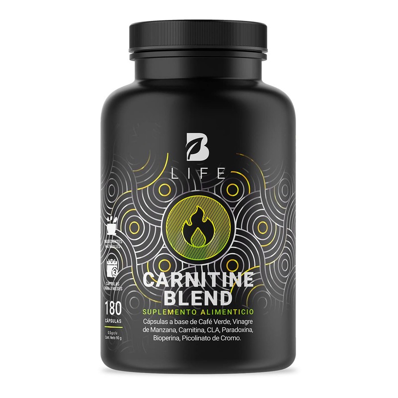 - Carnitine Blend es un suplemento alimenticio con 180 cápsulas a base de Café Verde, Vinagre de Manzana, Carnitina, CLA, Paradoxina, Bioperine y Picolinato de Cromo.