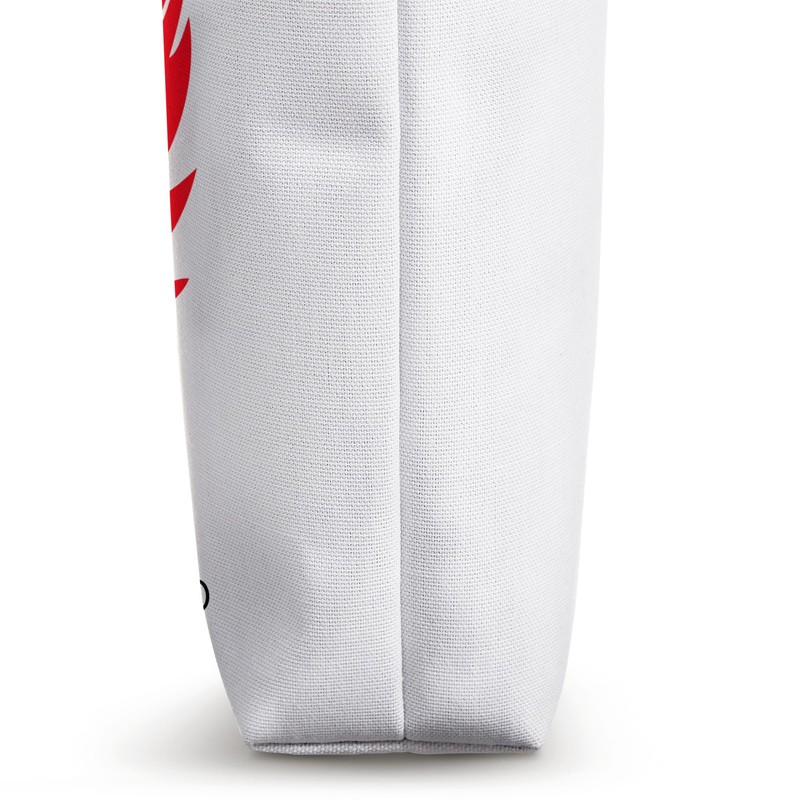 - 16” x 16” bag with two 14” long and 1” wide black cotton webbing strap handles.