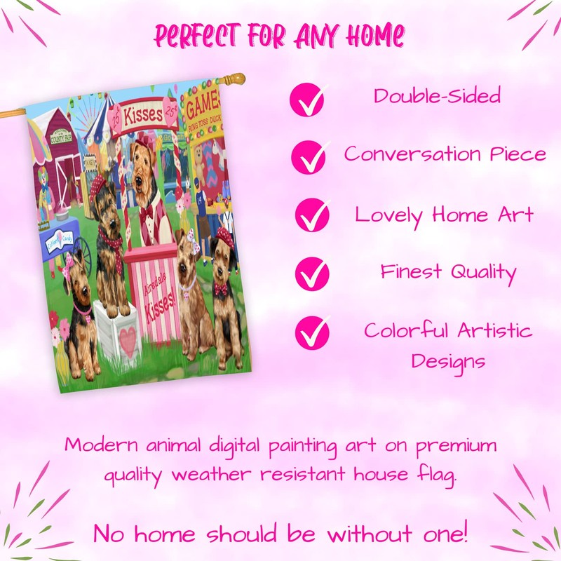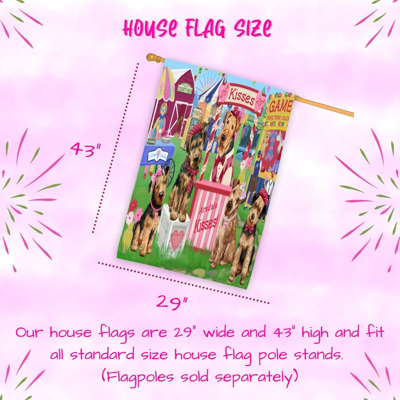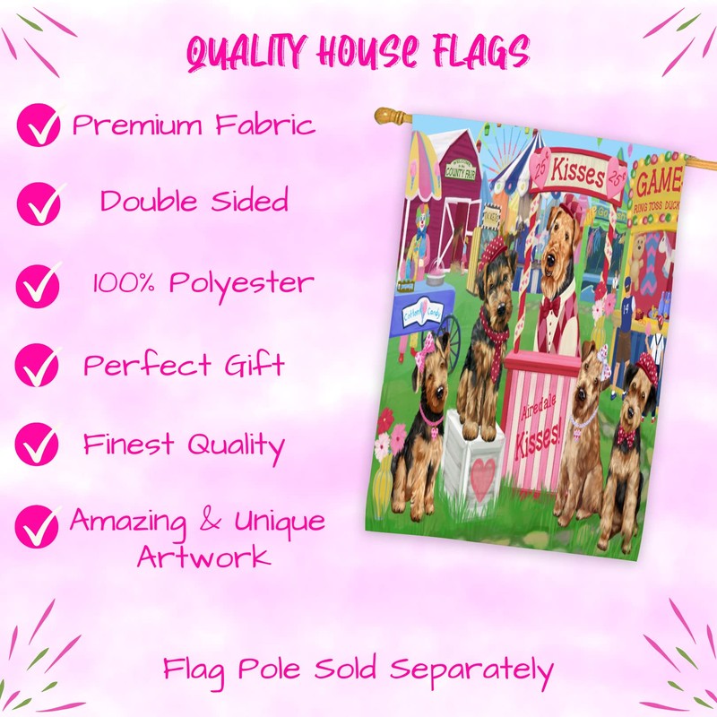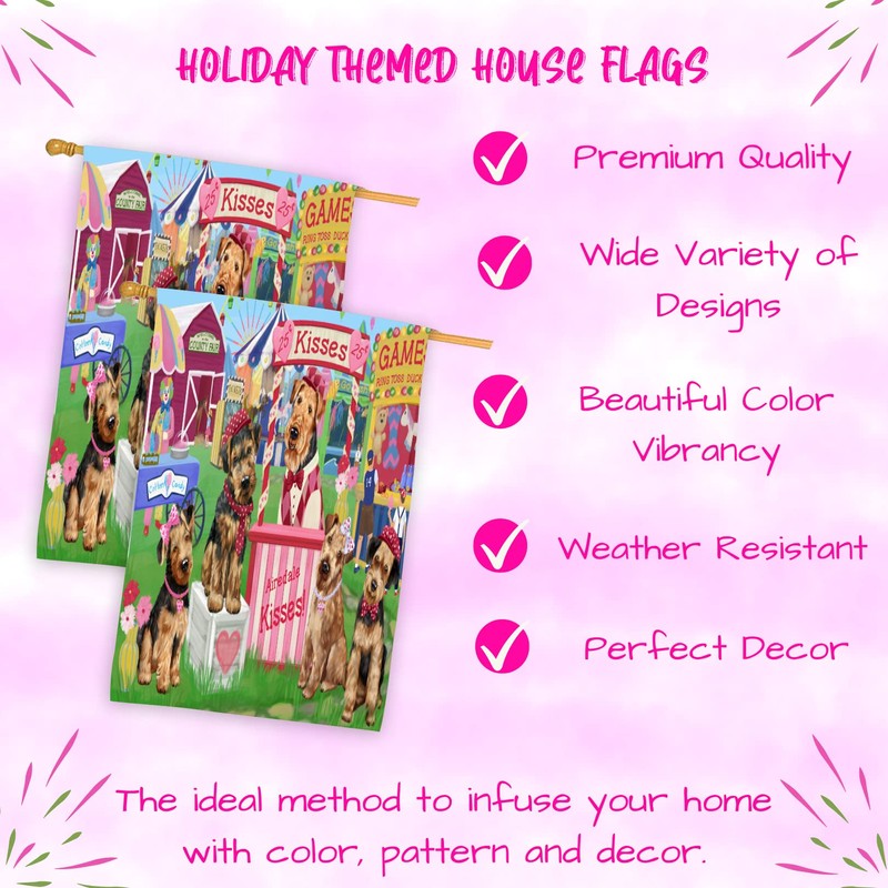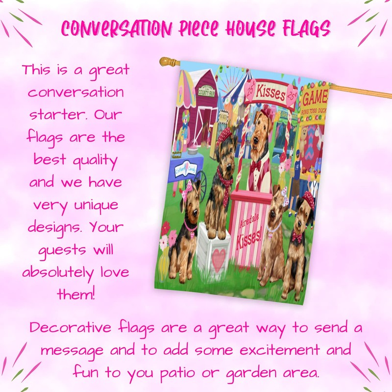 Carnival Kissing Booth Airedale Dogs House Flag - Outdoor Double Sided Pet Portrait Weather Resistant Premium Quality Home Decorative Flags 28"w x 40"h