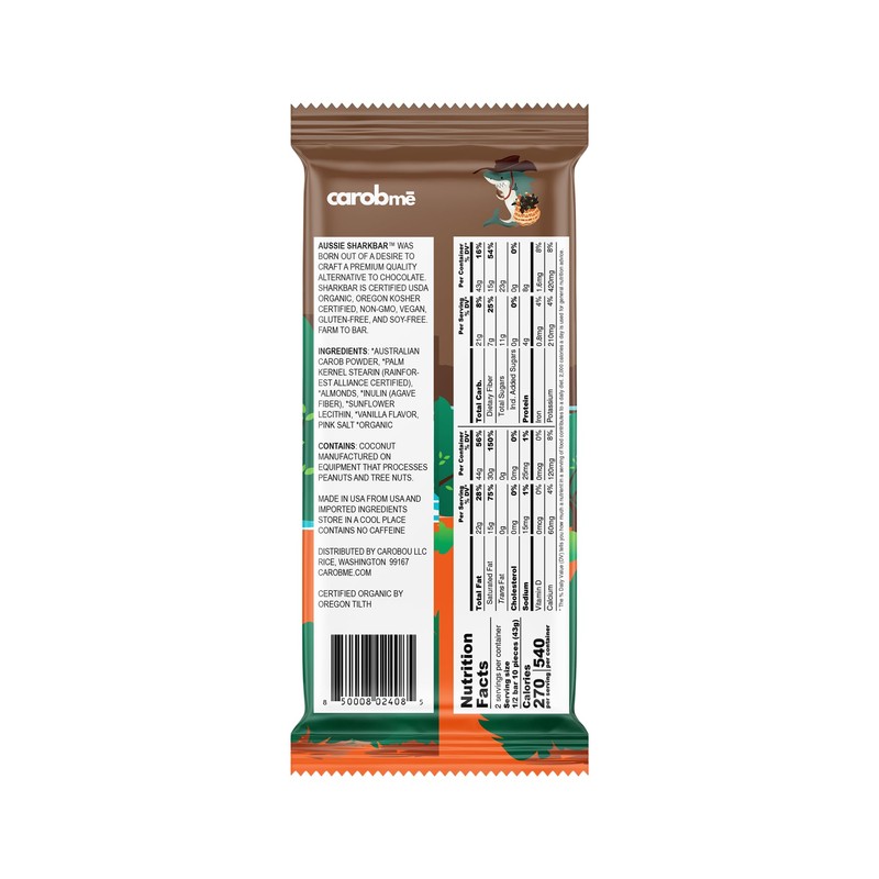 CAROBME ORGANIC UNSWEETENED ALMONDS CAROB BAR | Vegan Soy Free Gluten-Free | Caffeine Free Substitute for Chocolate, Candy and chocolate bars
