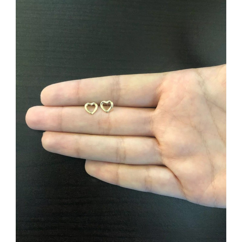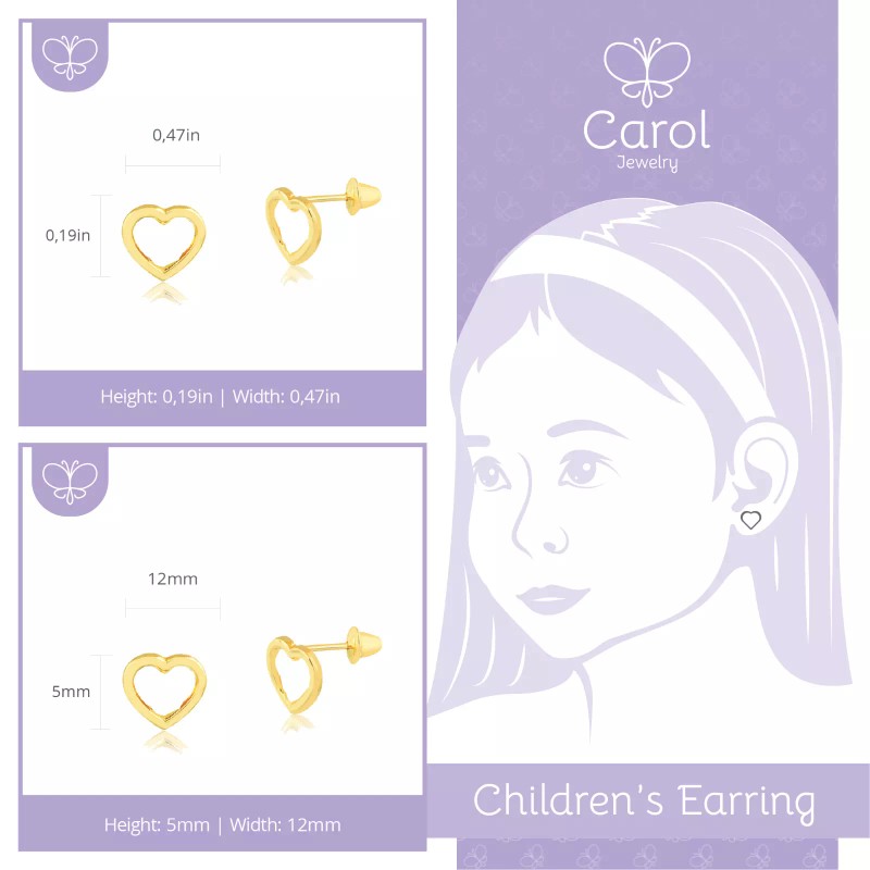 Carol 14k Solid Gold Hollow Heart Shaped Push Backs Stud Earrings Toddlers Children