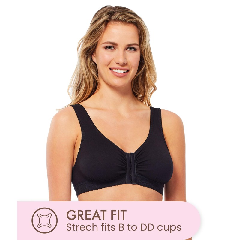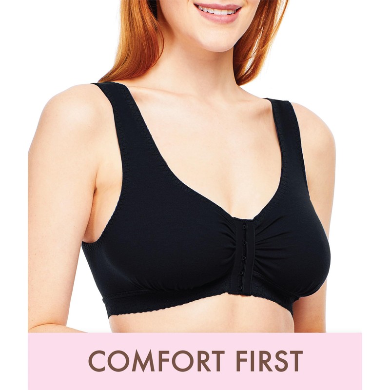 Carole Martin Full-Freedom Front Closure Wireless Cotton Bra-40 Black