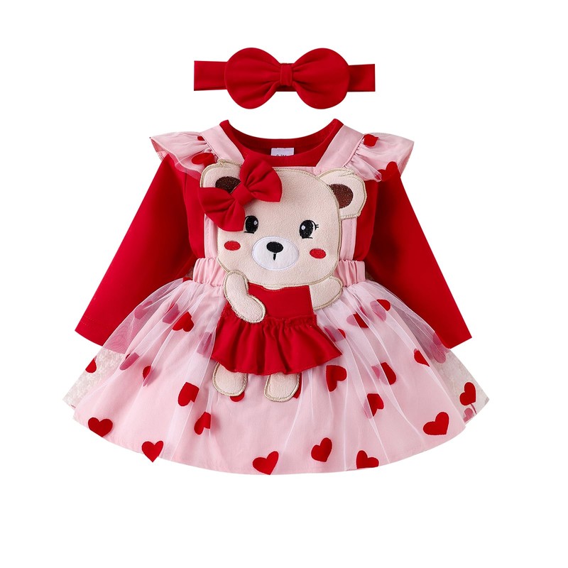 Design: this set of 3pcs includes a nice suspense dress with a heart and bear pattern, a matching redales and a headband, creating a charming and elegant look for your little girl.