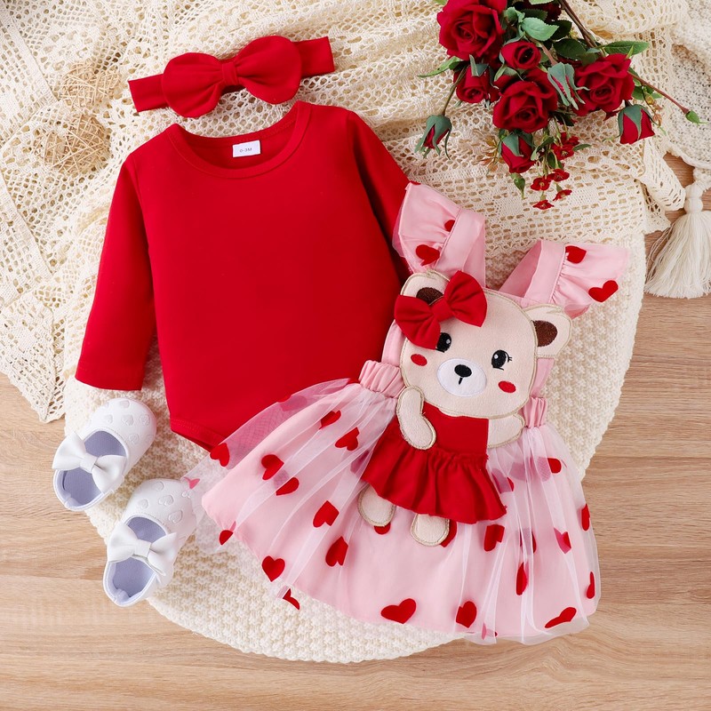 - With its vibrant colors and delicate details, this outfit will surely stand out from your little girl. The design of the heart of love represents the perfect symbol of love and affection, which makes it an appropriate choice for Valentine's Day.