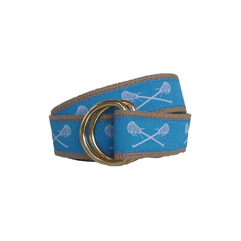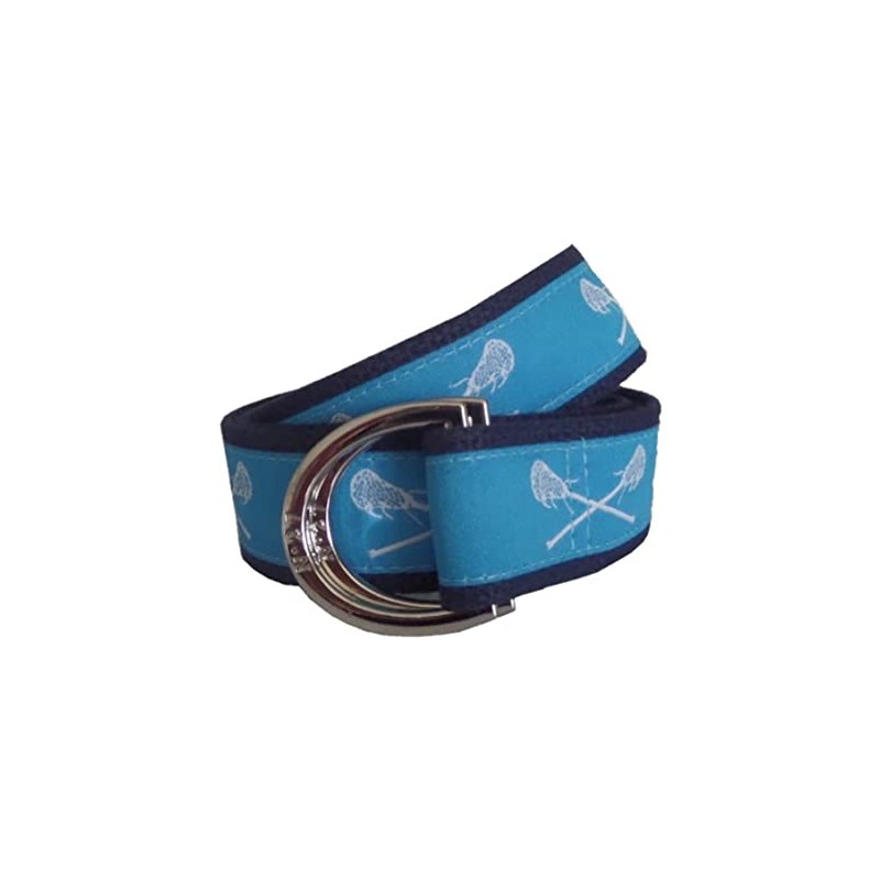 Carolina Blue Lacrosse Ribbon D-Ring Belt Brass D-Ring 44 Navy