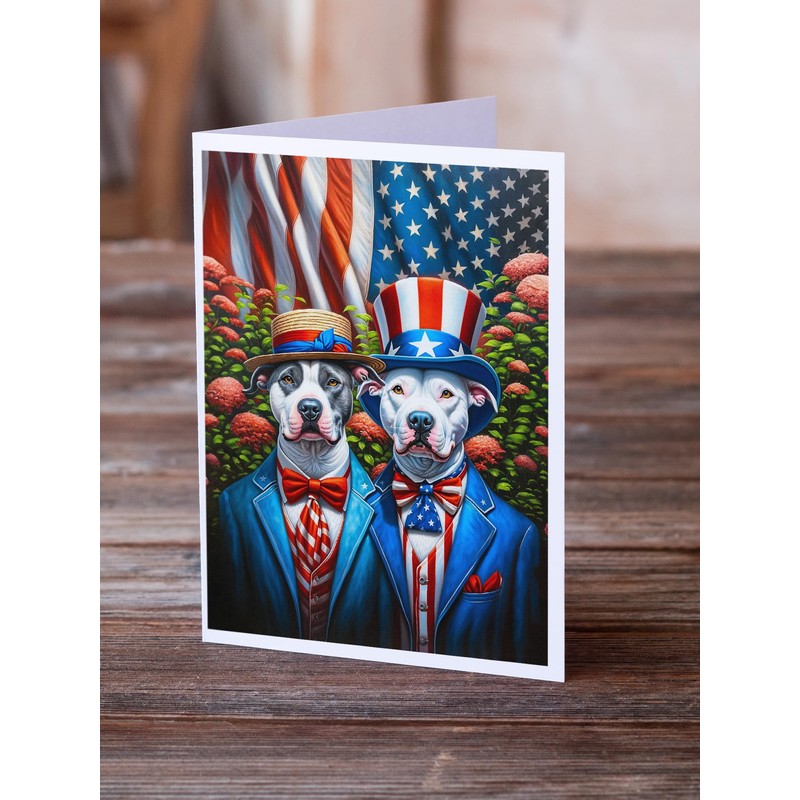 Caroline's Treasures All American Pit Bull Terrier Greeting Cards Pack of 8 Blank Cards with Envelopes Whimsical A7 Size 5x7 Blank Note Cards