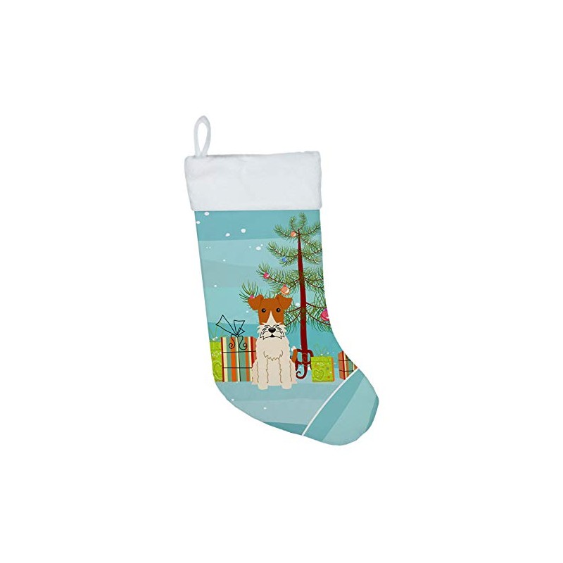 Caroline's Treasures BB4226CS Merry Christmas Tree Wire Fox Terrier Stocking,Multicolor,Large