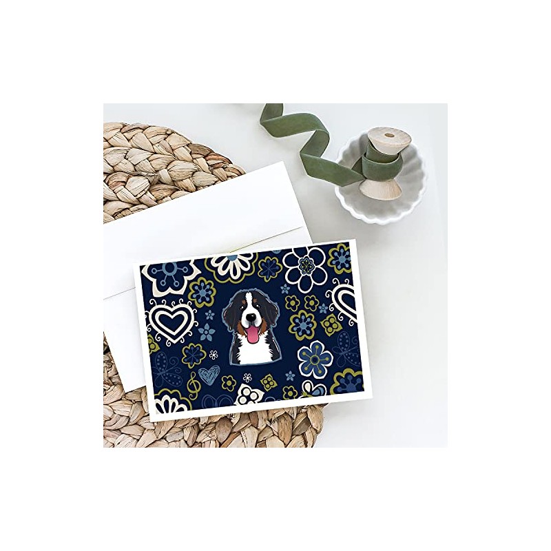 Caroline's Treasures BB5088GCA7P Blue Flowers Bernese Mountain Dog Greeting Cards and Envelopes Pack of 8 Blank Cards with Envelopes Whimsical A7 Size 5x7 Blank Note Cards