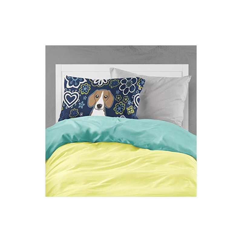Caroline's Treasures BB5090PILLOWCASE Blue Flowers Beagle Fabric Standard Pillowcase Lightweight Super Soft Easy Care Decorative Artwork Pillowcase, Standard