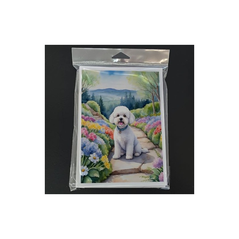 Caroline's Treasures Bichon Frise Spring Path Greeting Cards Pack of 8 Blank ...