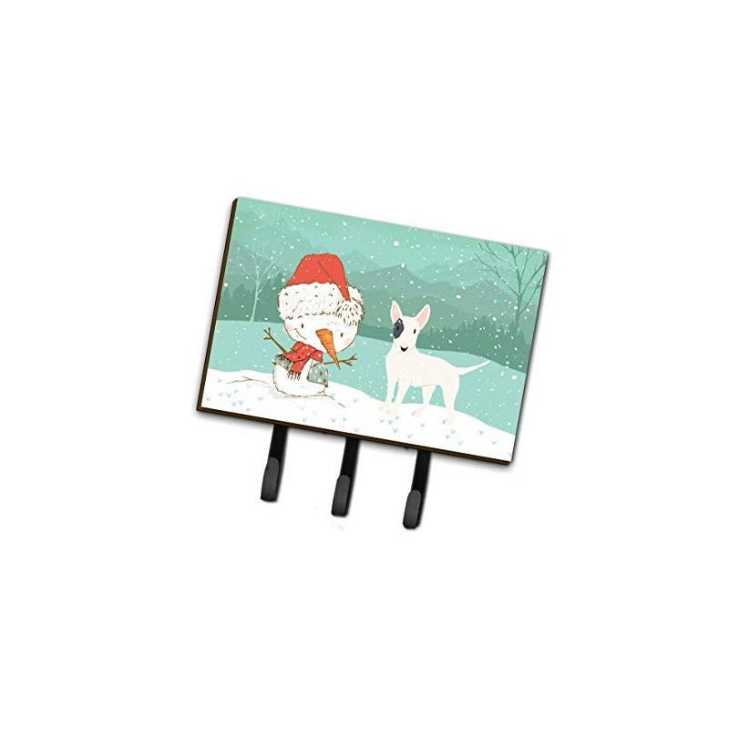 Caroline's Treasures CK2059TH68 White Spot Bull Terrier Snowman Christmas Leash or Key Holder, Triple, Multicolor