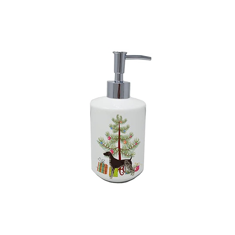 Caroline's Treasures CK3541SOAP German Shorthaired Pointer Christmas Tree Ceramic Soap Dispenser Hand Soap Dispenser Pump Bottles for Bathroom Kitchen, Empty Refillable Liquid Soap Container
