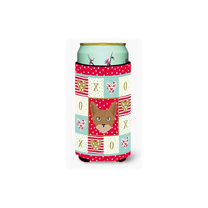 Caroline's Treasures CK5086TBC Australian Mist Cat Love Tall Boy Hugger, Red Can Cooler Sleeve Hugger Machine Washable Drink Sleeve Hugger Collapsible Insulator Beverage Insulated Holder