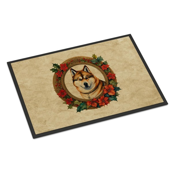 Caroline's Treasures DAC2297JMAT Akita Christmas Flowers Doormat Front Door Mat Indoor Outdoor Rugs for Entryway, Non Slip Washable Low Pile, 24H X 36W