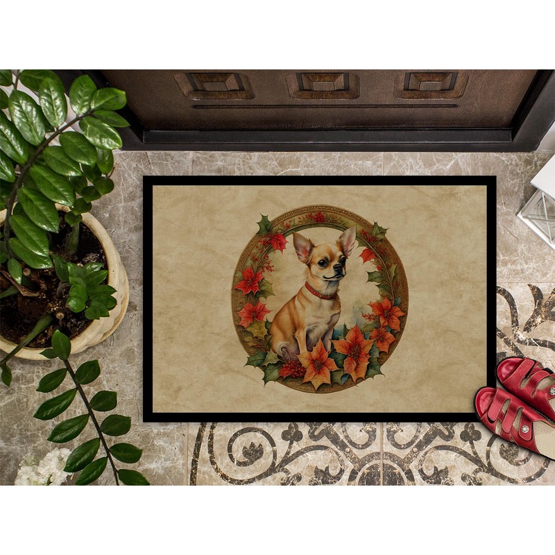Caroline's Treasures DAC2341JMAT Chihuahua Christmas Flowers Doormat Front Door Mat Indoor Outdoor Rugs for Entryway, Non Slip Washable Low Pile, 24H X 36W