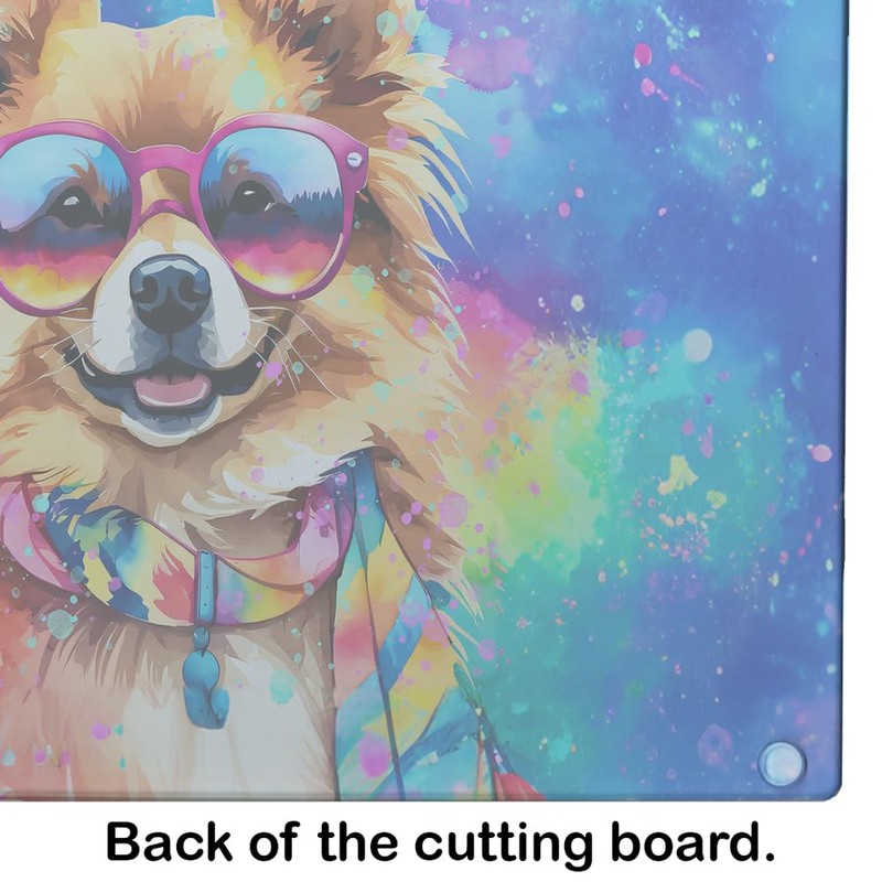 Caroline's Treasures DAC2540LCB Pomeranian Hippie Dawg Glass Cutting Board Large Decorative Tempered Glass Kitchen Cutting and Serving Board Large Size Chopping Board