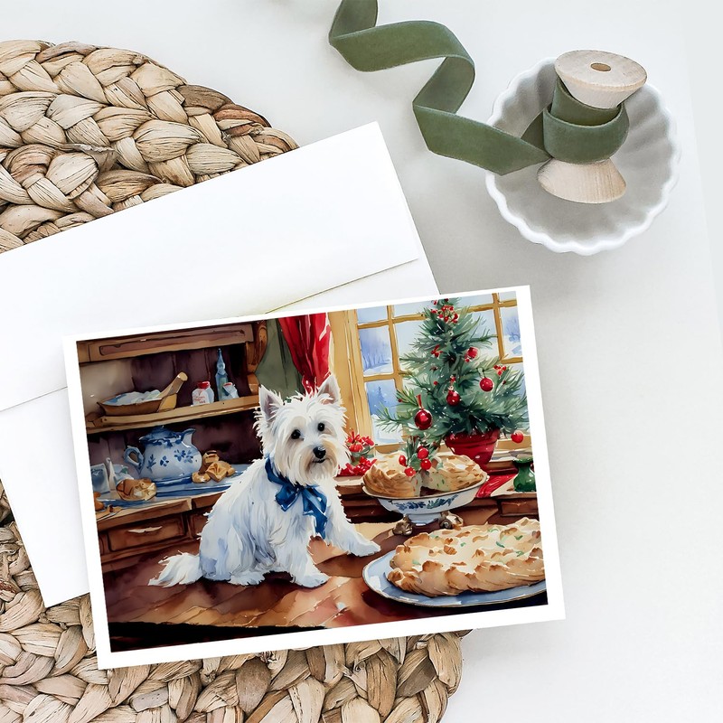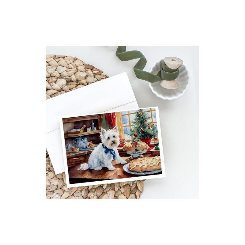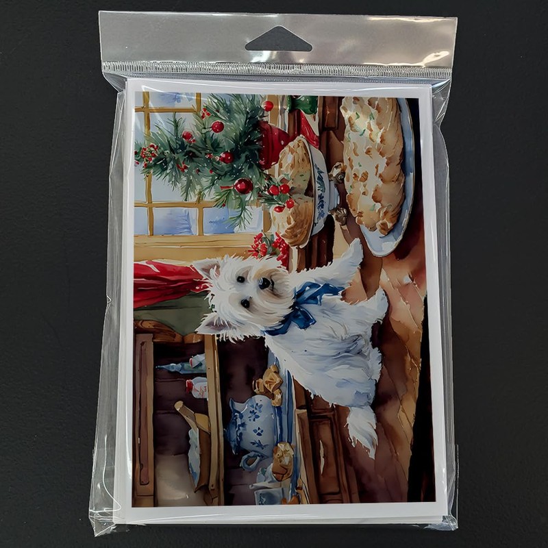 Caroline's Treasures DAC3891GCA7P Westie Christmas Cookies Greeting Cards Pack of 8 Blank Cards with Envelopes Whimsical A7 Size 5x7 Blank Note Cards