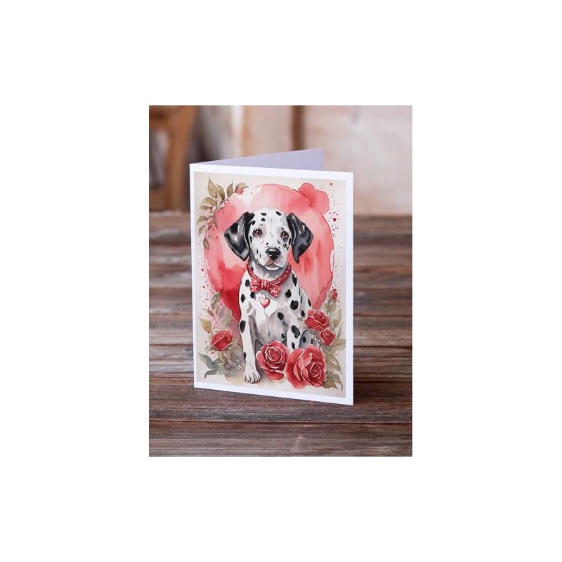 Caroline's Treasures DAC4421GCA7P Dalmatian Valentine Roses Greeting Cards Pa...