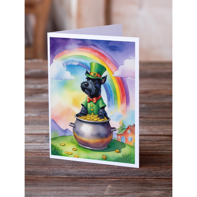 Caroline's Treasures DAC5607GCA7P Scottish Terrier St Patrick's Day Greeting Cards Pack of 8 Blank Cards with Envelopes Whimsical A7 Size 5x7 Blank Note Cards