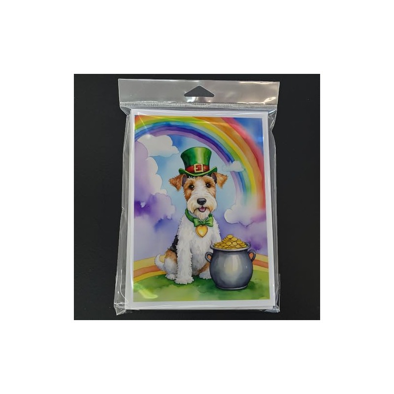 Caroline's Treasures DAC5628GCA7P Fox Terrier St Patrick's Day Greeting Cards Pack of 8 Blank Cards with Envelopes Whimsical A7 Size 5x7 Blank Note Cards