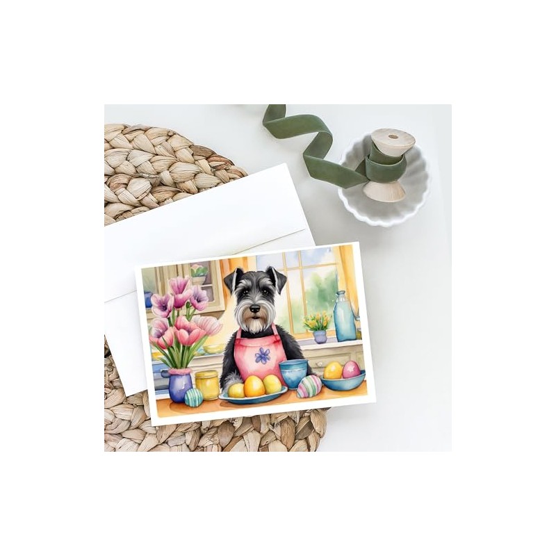 Caroline's Treasures DAC6893GCA7P Decorating Easter Schnauzer Greeting Cards Pack of 8 Blank Cards with Envelopes Whimsical A7 Size 5x7 Blank Note Cards