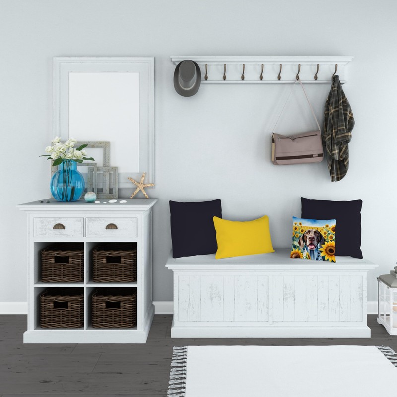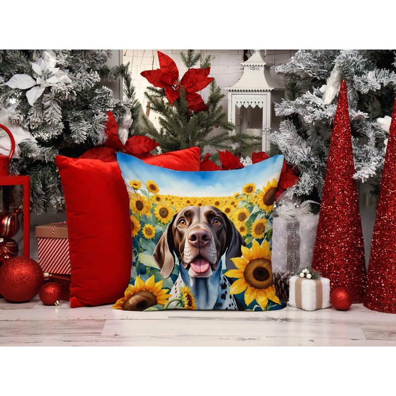 Caroline's Treasures in Sunflowers Throw Pillow, 14Hx14W, German Shorthaired Pointer 6085