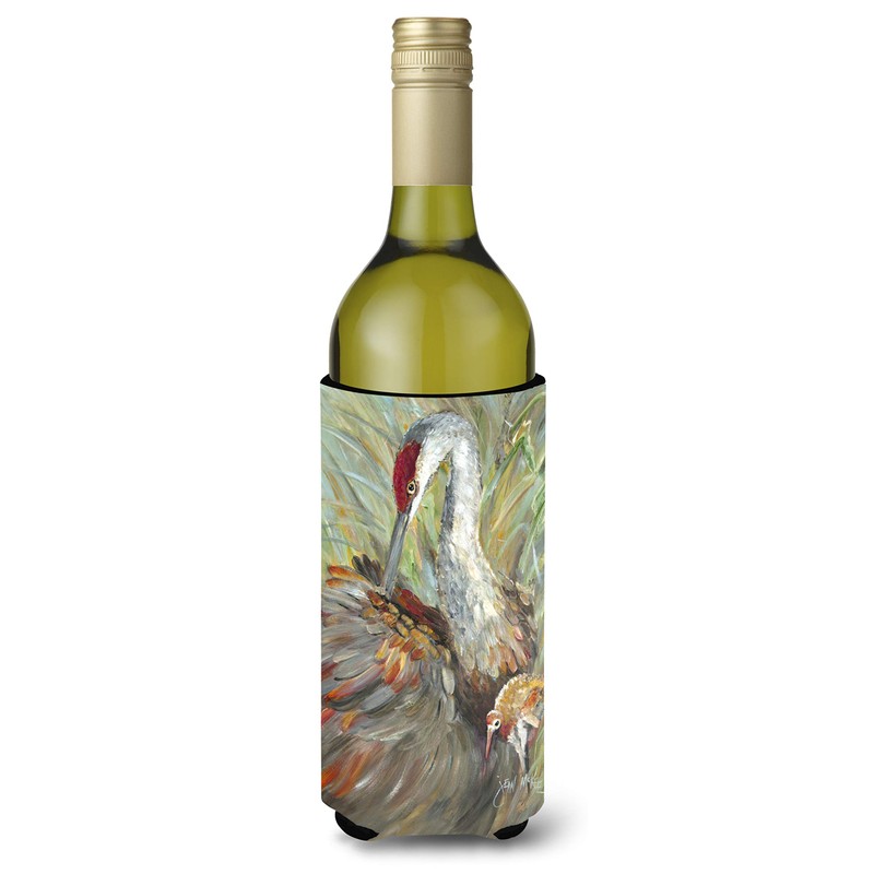 Caroline's Treasures JMK1143LITERK Sandhill Crane with Baby Wine Bottle Hugger Bottle Cooler Sleeve Hugger Machine Washable Collapsible Insulator Beverage Insulated Holder