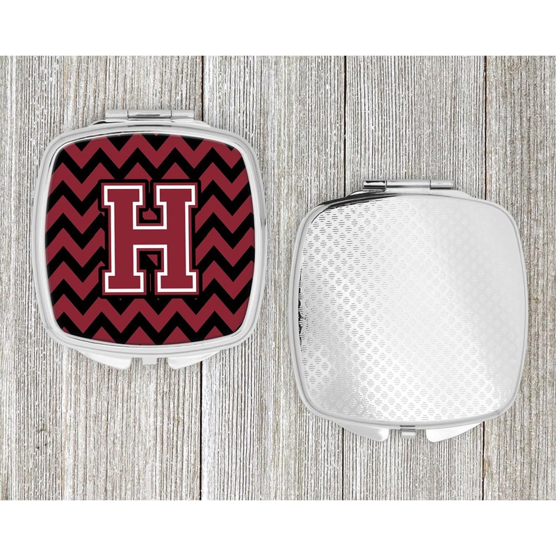 Caroline's Treasures Letter H Chevron Garnet and Black Compact Travel Mirrors, Multicolor