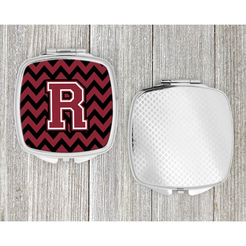 Caroline's Treasures Letter R Chevron Garnet and Black Compact Travel Mirrors, Multicolor