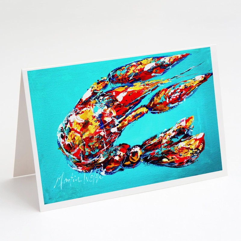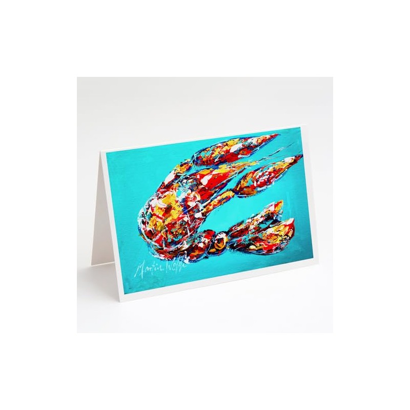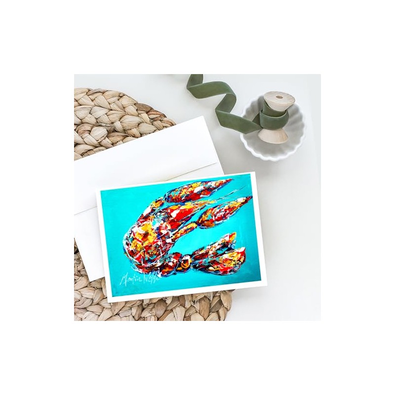 Caroline's Treasures Lucy the Crawfish in blue Greeting Cards Pack of 8 Blank Cards with Envelopes Whimsical A7 Size 5x7 Blank Note Cards
