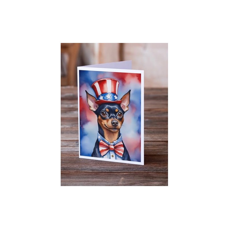 Caroline's Treasures Miniature Pinscher Patriotic American Greeting Cards Pack of 8 Blank Cards with Envelopes Whimsical A7 Size 5x7 Blank Note Cards