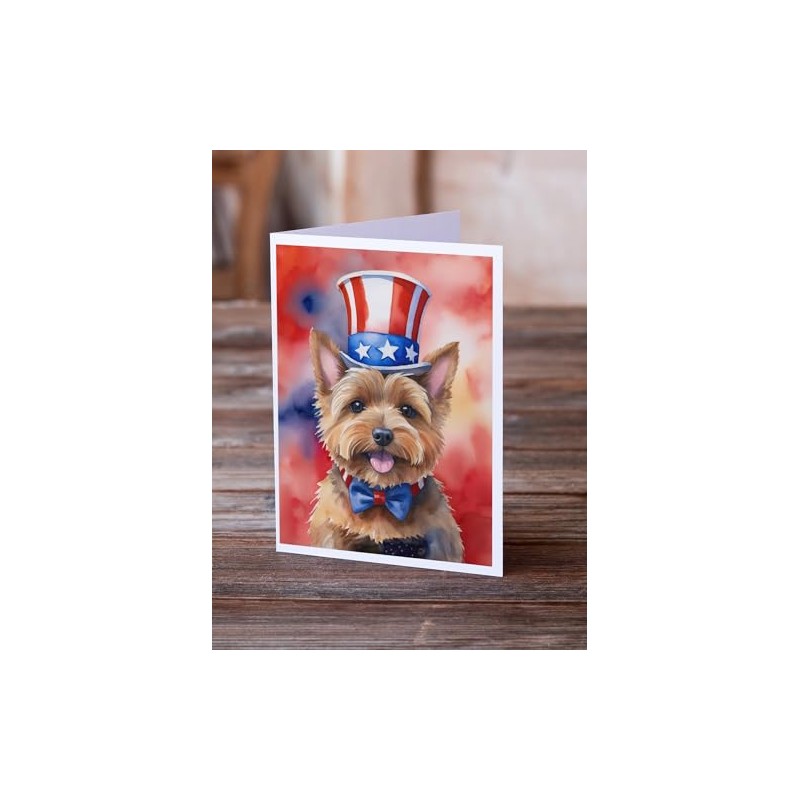 Caroline's Treasures Norwich Terrier Patriotic American Greeting Cards Pack of 8 Blank Cards with Envelopes Whimsical A7 Size 5x7 Blank Note Cards