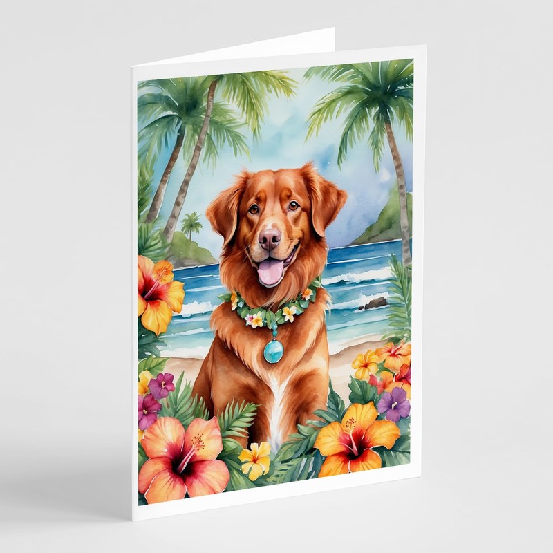 Caroline's Treasures Nova Scotia Duck Tolling Retriever Luau Greeting Cards Pack of 8 Blank Cards with Envelopes Whimsical A7 Size 5x7 Blank Note Cards