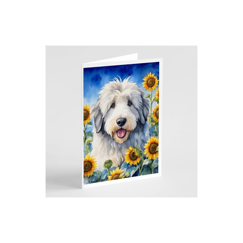 Caroline's Treasures Old English Sheepdog in Sunflowers Greeting Cards Pack of 8 Blank Cards with Envelopes Whimsical A7 Size 5x7 Blank Note Cards
