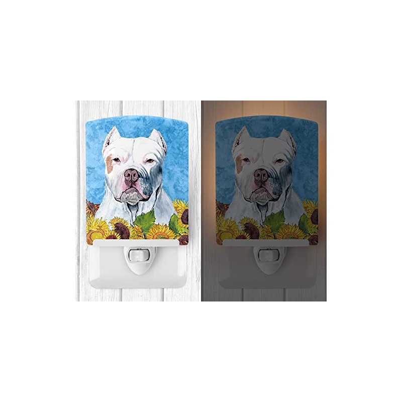 Caroline's Treasures SC9077CNL Pit Bull in Summer Flowers Ceramic Night Light Compact, UL-Certified, Ideal for Bedroom, Bathroom, Nursery, Hallway, Kitchen, 6x4x3, Multicolor