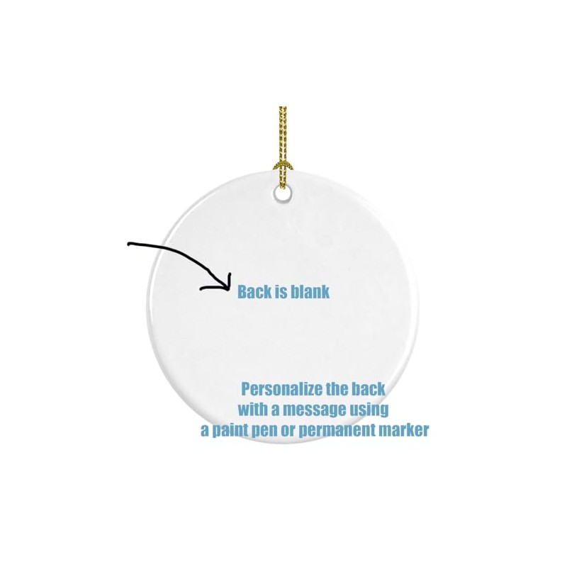 - The back of the holiday ornament is white and can be personalized by you with a paint pen or a permanent marker.