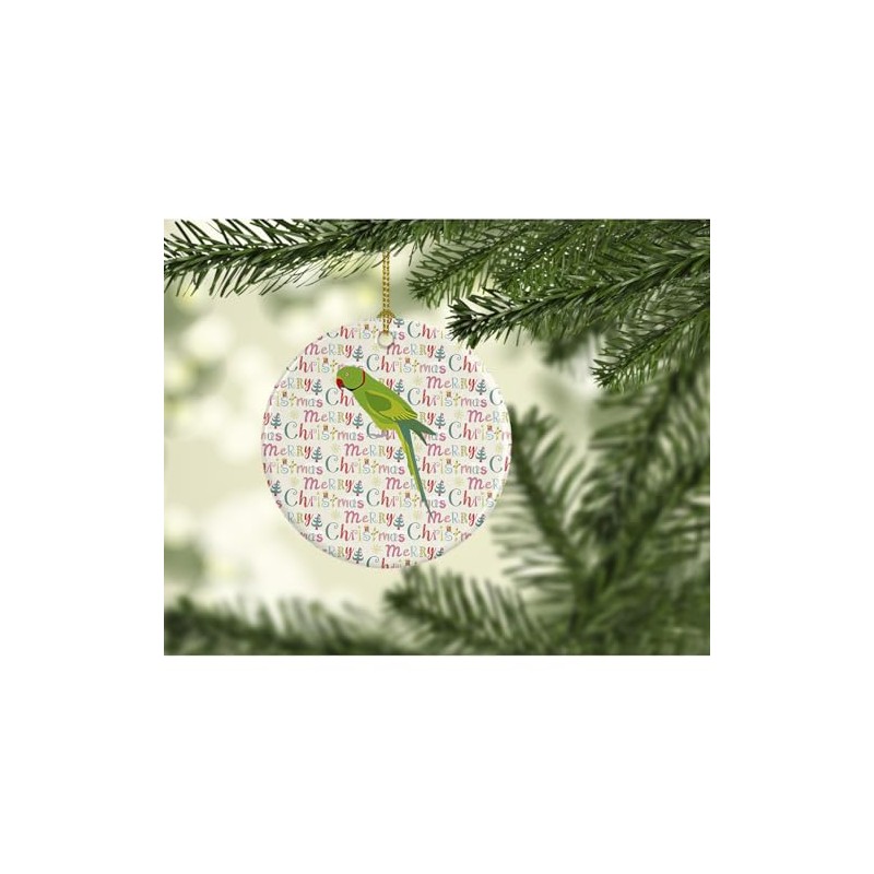 Caroline's Treasures WDK2908CO1 Ring-Necked Parakeet Christmas Ceramic Ornament, 3 in, Multicolor