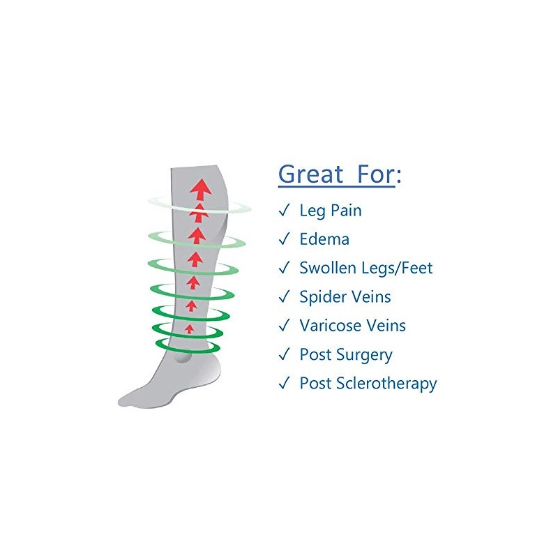 - Made in USA, 20-30 mmHg Compression Socks provides relief for Varicose Veins and Swollen ankles