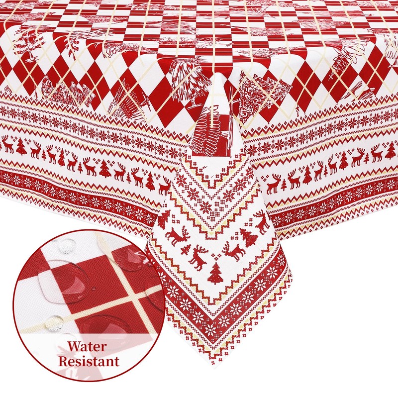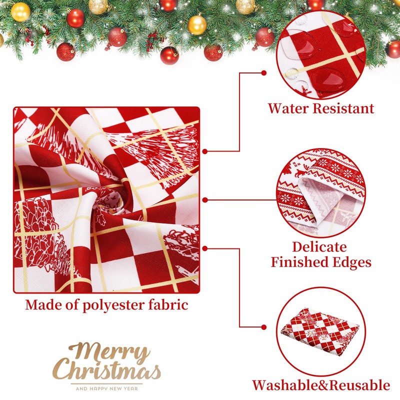 - WATERPROOF FABRIC: Crafted from durable waterproof polyester, this Christmas tablecloth acts as a protective shield against scratches, oil, and spills. Keep your table looking modern and pristine, while also enjoying worry-free dining during your holiday gatherings.