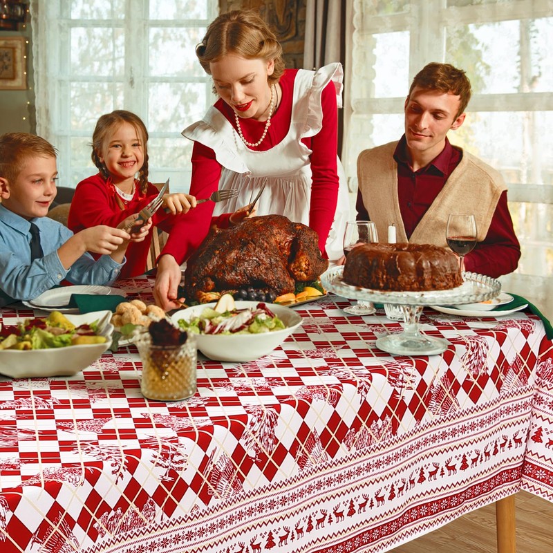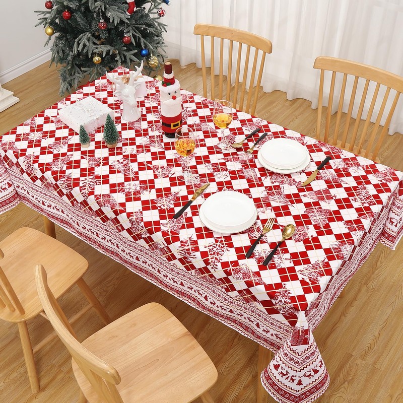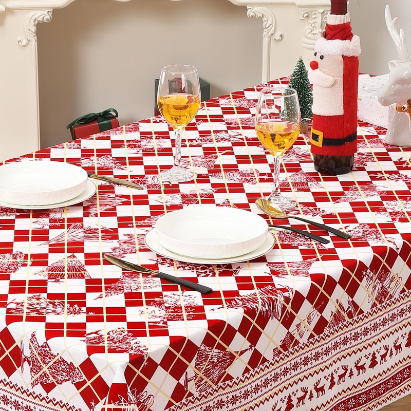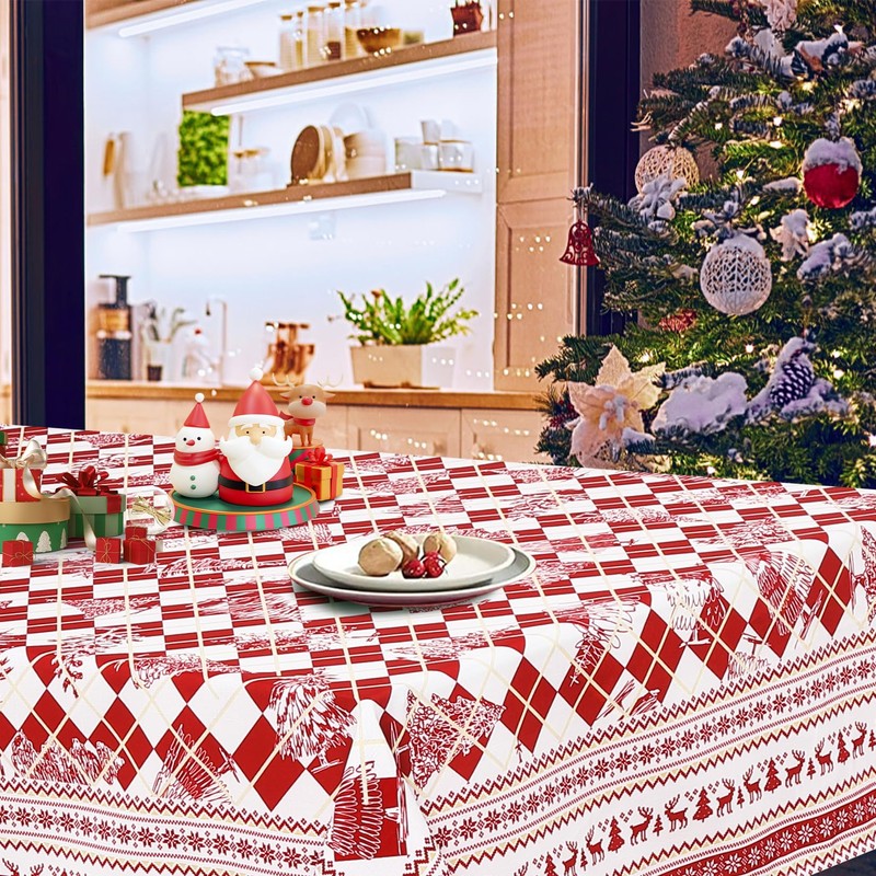 - WATERPROOF FABRIC: Crafted from durable waterproof polyester, this Christmas tablecloth acts as a protective shield against scratches, oil, and spills. Keep your table looking modern and pristine, while also enjoying worry-free dining during your holiday gatherings.