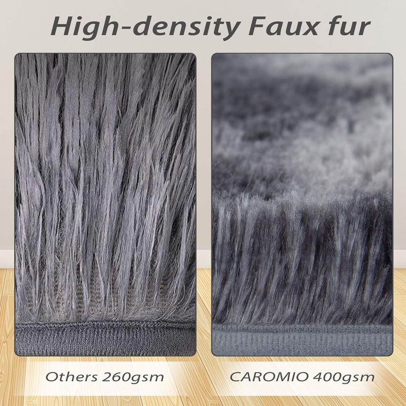 - Safe Materials: CAROMIO area rug was designed to last for years to come! This extremely soft fluffy velvet carpet is made from safe polyester material. You could feel free to lay on it, barefoot walking, and good for tummy time. Environmentally friendly high pile adds a touch of luxury, no odor, not easy to fade and not easily contaminated by dust.
