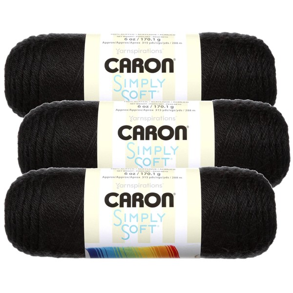 • Price is for 3 skeins of Caron Simply Soft Yarn Solids Black H97003-9727 (UPC 035613977272) for a total of 945 yards/18oz (864 meters/510gr) knitting yarn