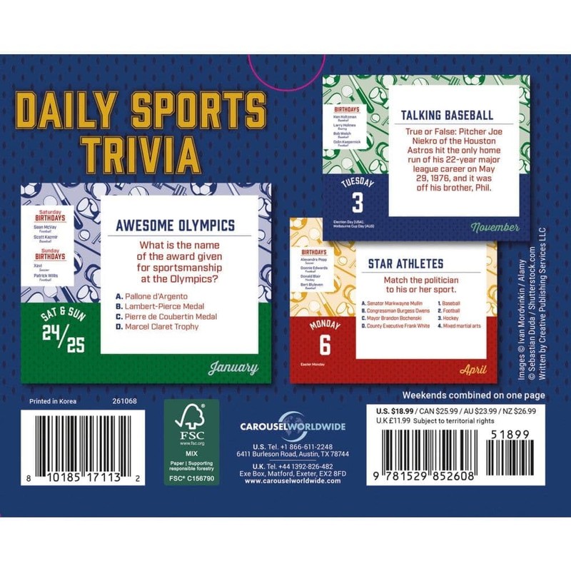 Carousel Calendars, Daily Sports Trivia 2026 Desk Calendar, 5.5'' X 5.5'', 16-Month Calendar with Stapled Binding