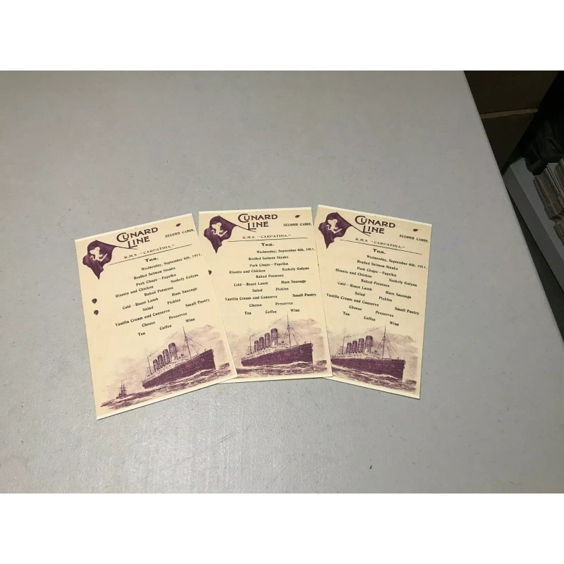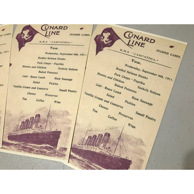 CARPATHIA DINNER MENU SECOND CLASS SEPTEMBER 6 1911 NICE REPLICA