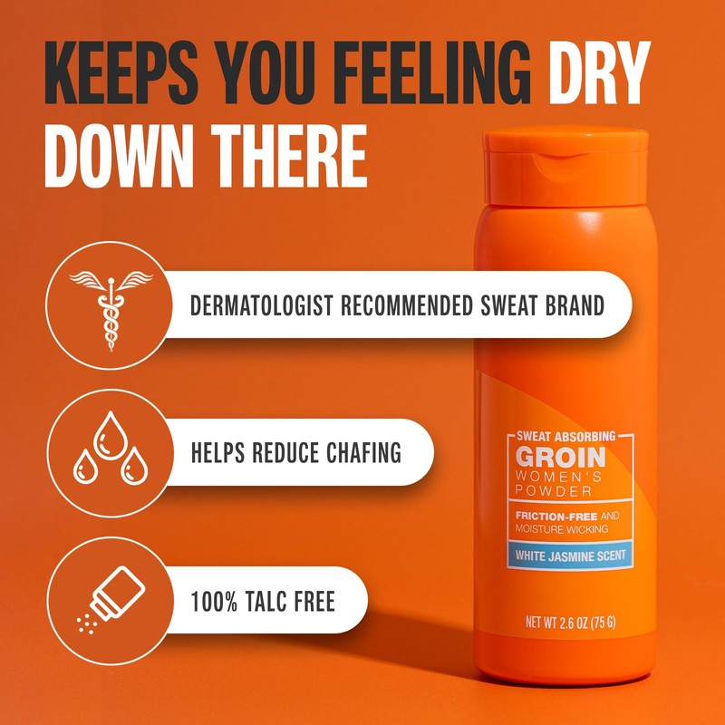 A light white jasmine scent ensures you smell as fresh as you feel. This is your SWEAT ABSORBING SUPER POWDER.
