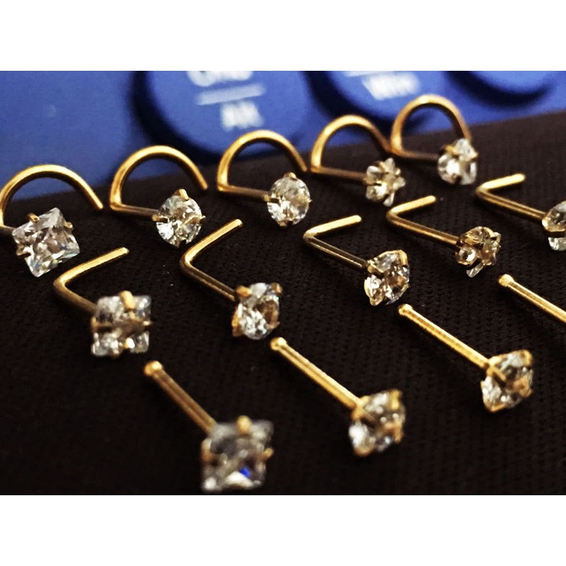 - [Total 5pcs Shiny Gold Cubic Zirconia Bone Nose Studs] The top is different size and mix-styles CZ. The nose rings studs are attractive and trendy. More choices for your nose and ear daily wear.