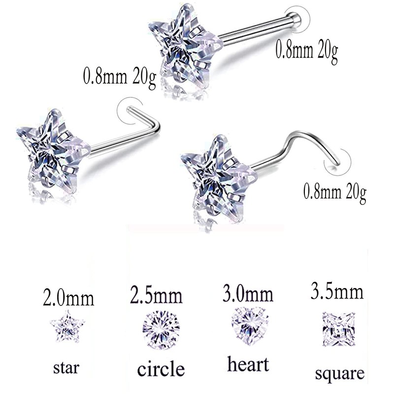 - [Bling CZ Gold Bone Nose Studs Size] Gauge Size of Pin: 20G =0.8mm, The Pin Length About over 6.5-7.0mm,The cubic Zirconia Top Size: 2.0mm, 2.5mm, 3.0mm,3.5mm, 4.5mm.. Different Sizes Meet The Different Needs of Fashion. It looks simple and elegant.