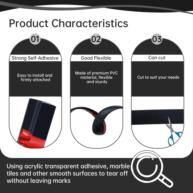 - 【Heavy-Duty Multi-Surface Adhesion】Featuring industrial-strength self-adhesive backing, this strip bonds firmly to wood, vinyl, laminate, and tile floors. Scratch-resistant, waterproof, and heat-resistant, it withstands daily wear in homes, hotels, or offices.