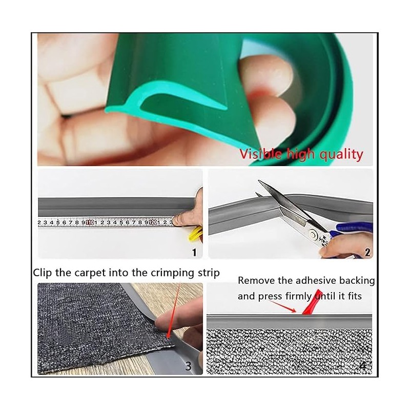 - Carpet Edge Trim: This self-adhesive strip features industry-leading adhesive for long-lasting stability, preventing peeling edges. Clean the surface before installation, and apply heat with a hair dryer if bent during shipping for better adhesion