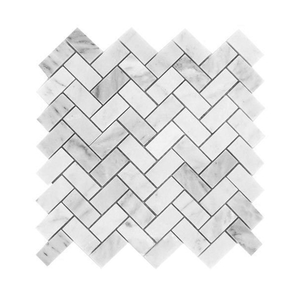- CARRARA VENATO HERRINGBONE 1X2" MOSAIC MARBLE TILE